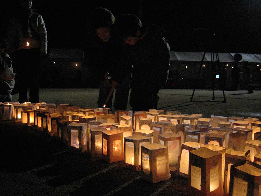 - [2006/01/16]阪神大震災あす11年 記憶・教訓 受け継ぐ 「生きる」紙灯籠3000個 今治で輝く(愛媛新聞)