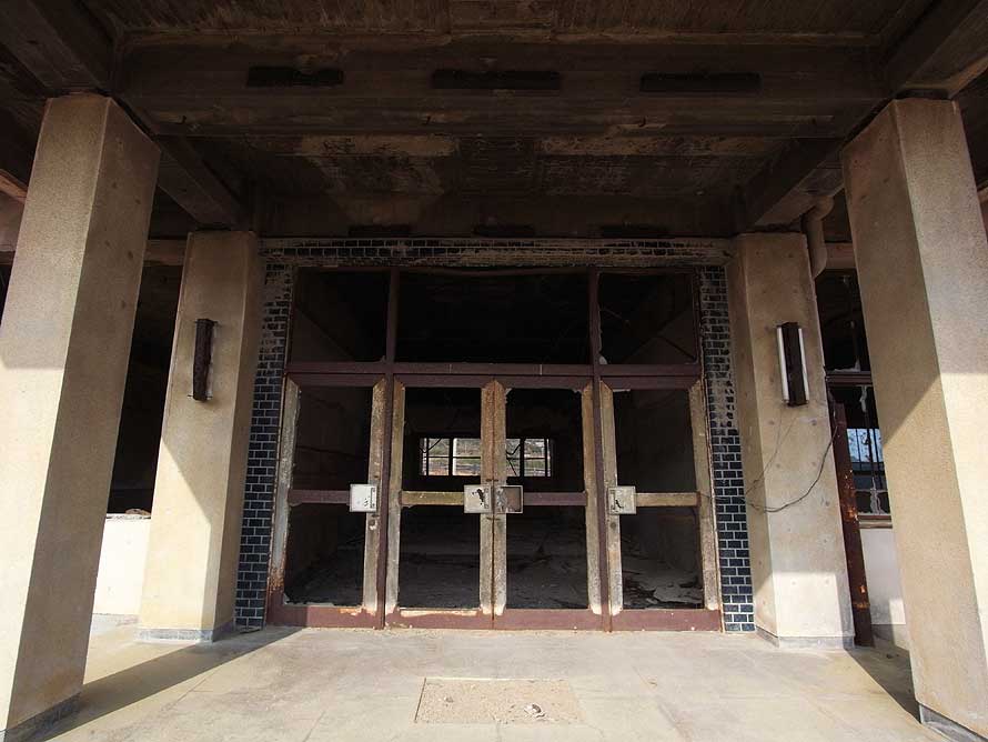 校舎に近づいてみると、窓は全て失われ、校舎内部の机や椅子などの可燃物は全て焼失していた。枠や配管などの鉄の部分だけが剥き出しになり錆び付いている。教室の床は全て燃え落ちて失われたようで、デコボコしたコンクリート基礎だけが剥き出しだ。学校の床下ってこんな形になっていたのかと思う。