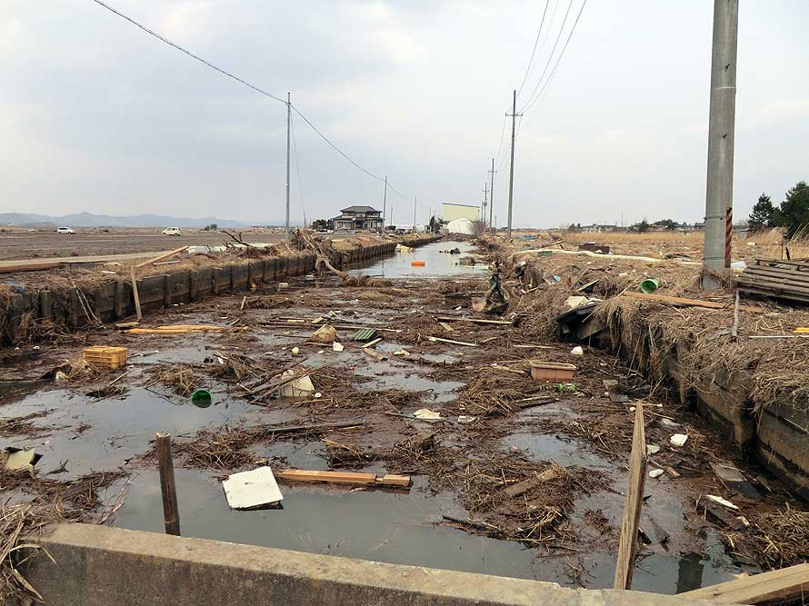 福島県に隣接する山元町は、高台の無い仙台平野が続くため、その平野部のほとんどが浸水した。この辺りは海岸から数キロ離れた地域であるが、津波が到達。床上90cmくらいまで浸水したという。