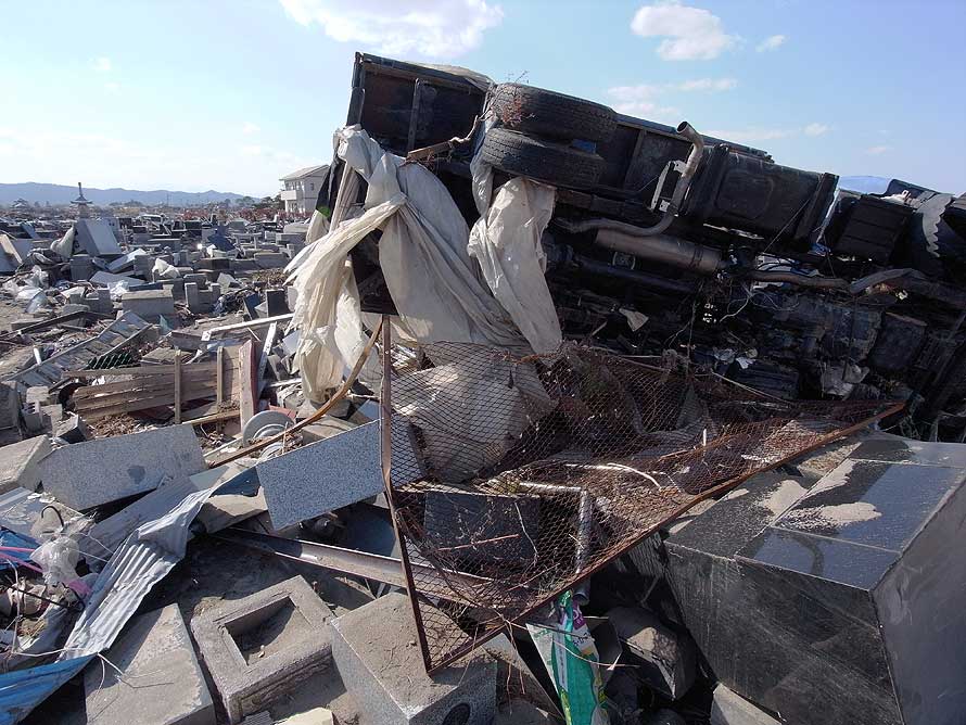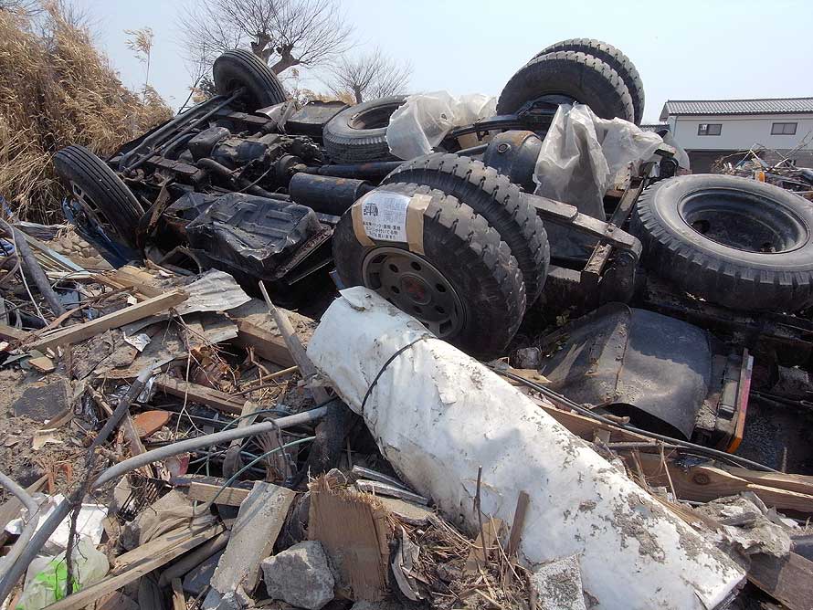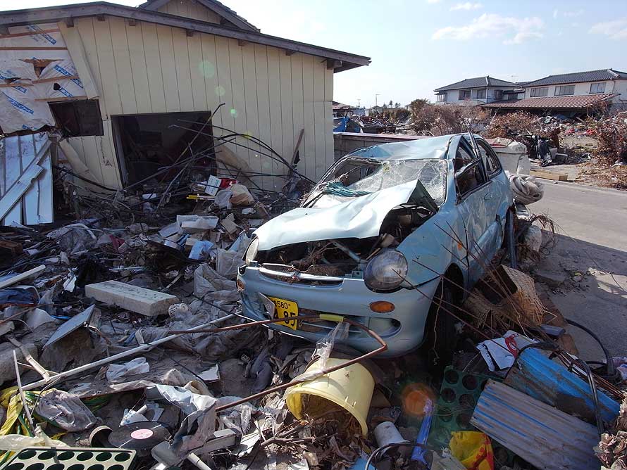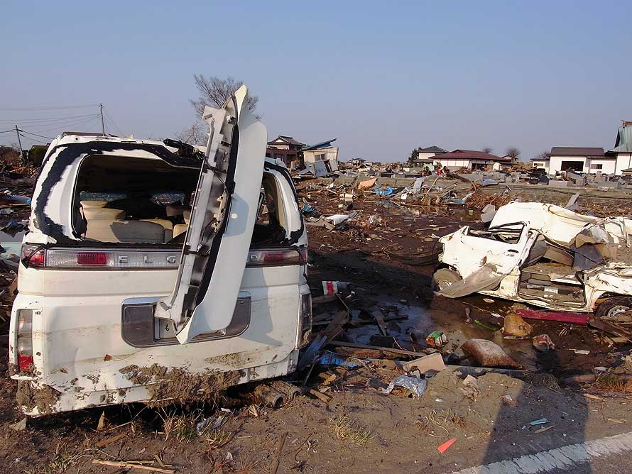 津波によって被災した自動車 (宮城県亘理町 2011年4月14日)