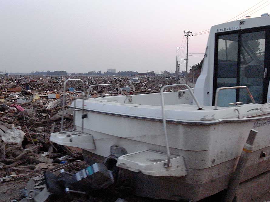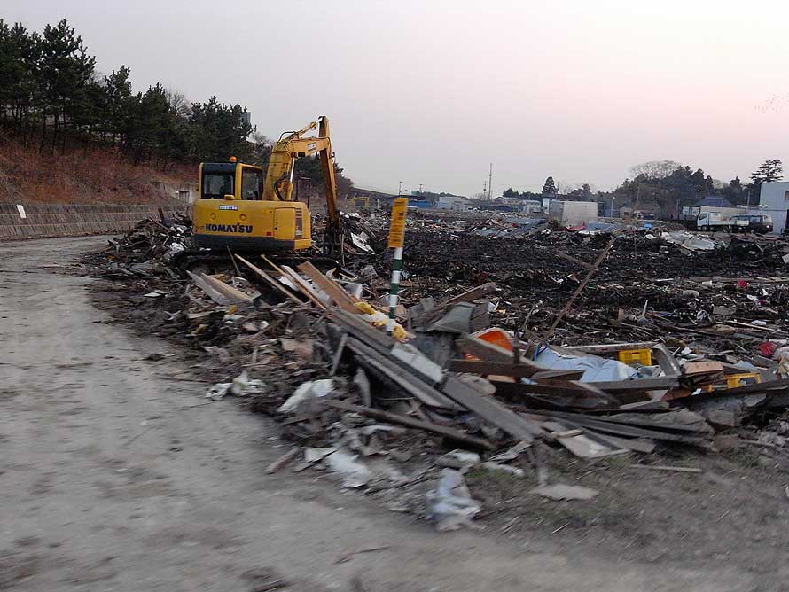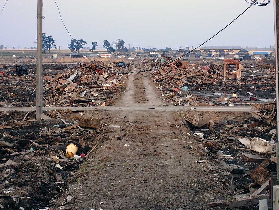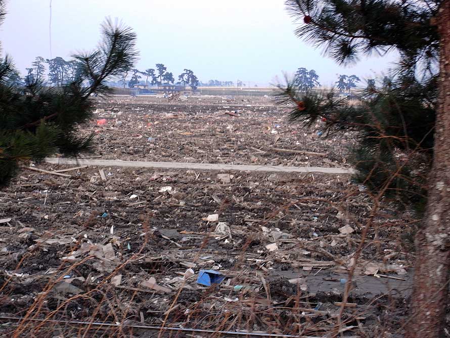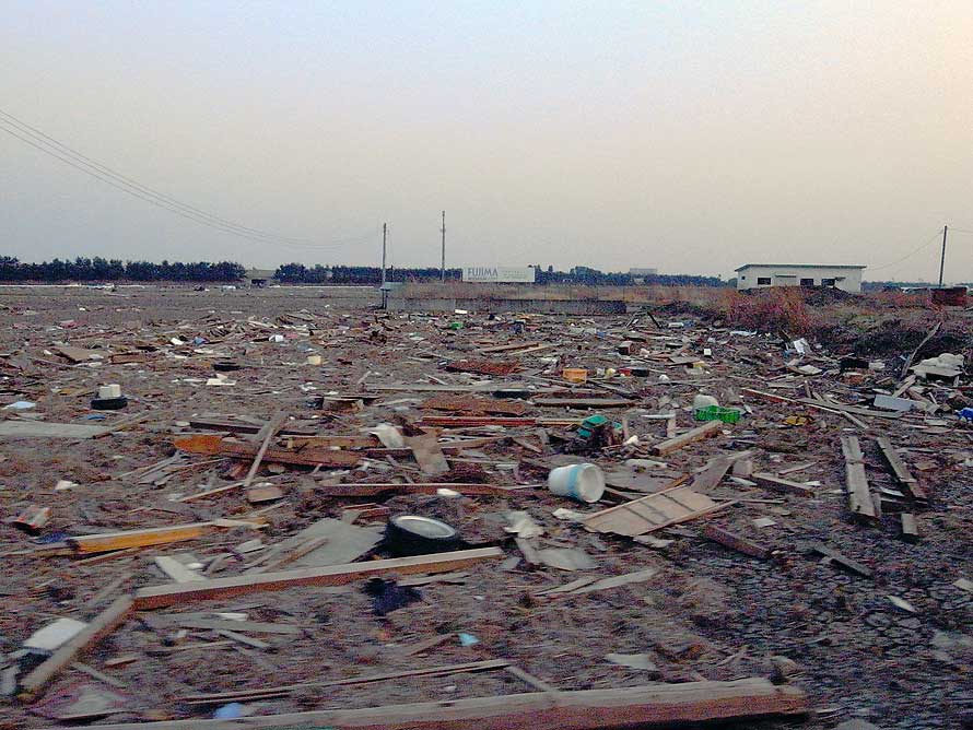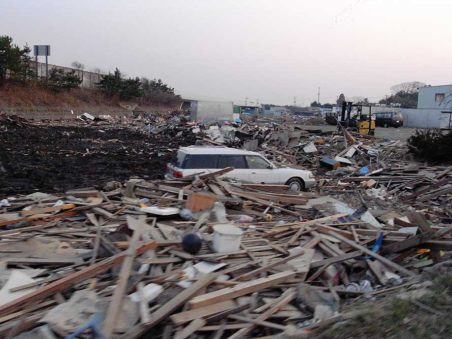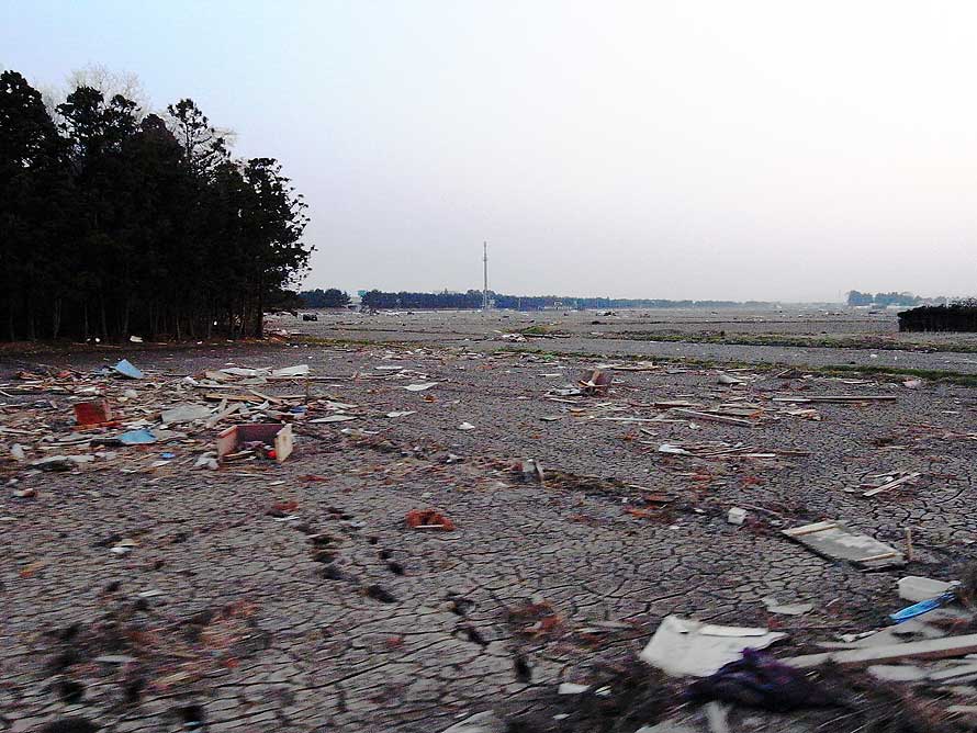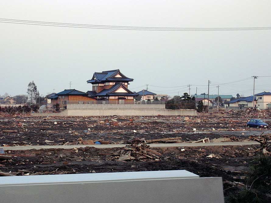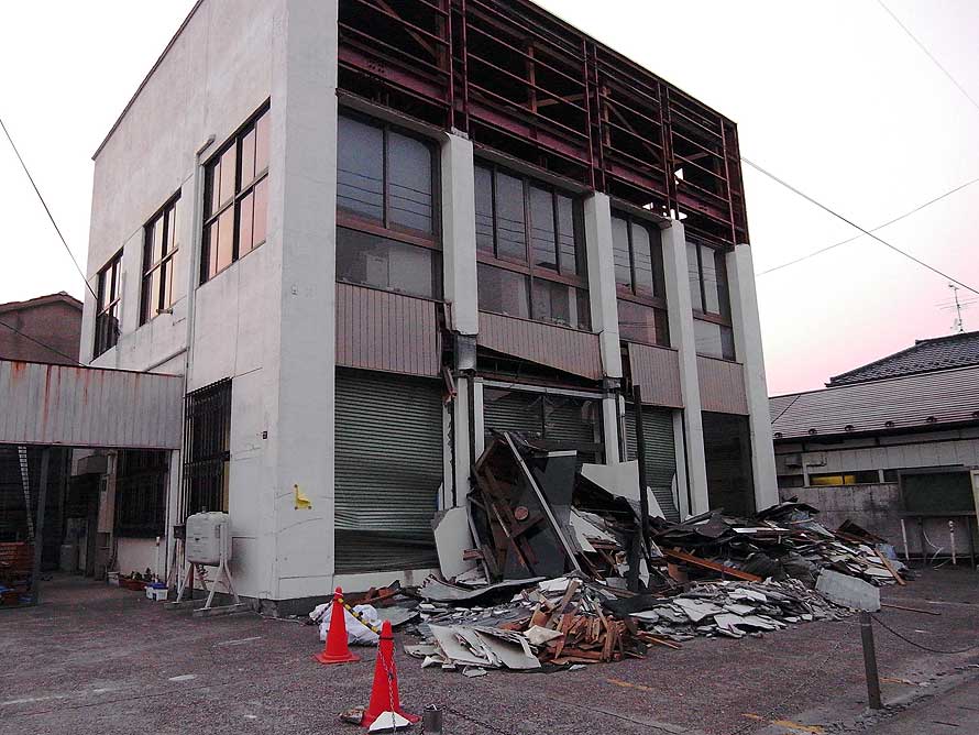 周囲の建物にはそれほど被害は目立っていなかったが、この建物は外壁が落下していた。外観は大きく崩れていたが、内部の構造的には大丈夫には見える。