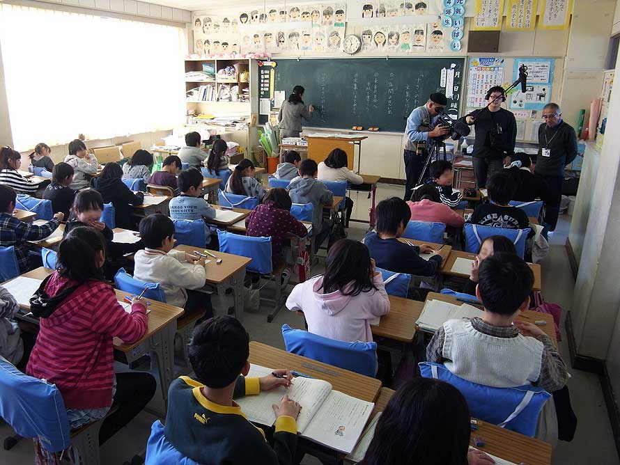 4年生の授業風景。作文を創作している。(宮城県石巻市・門脇小学校 青池憲司監督 2012年2月24日)
