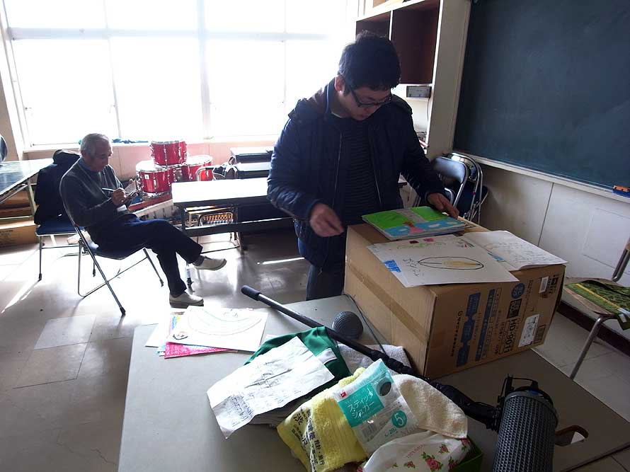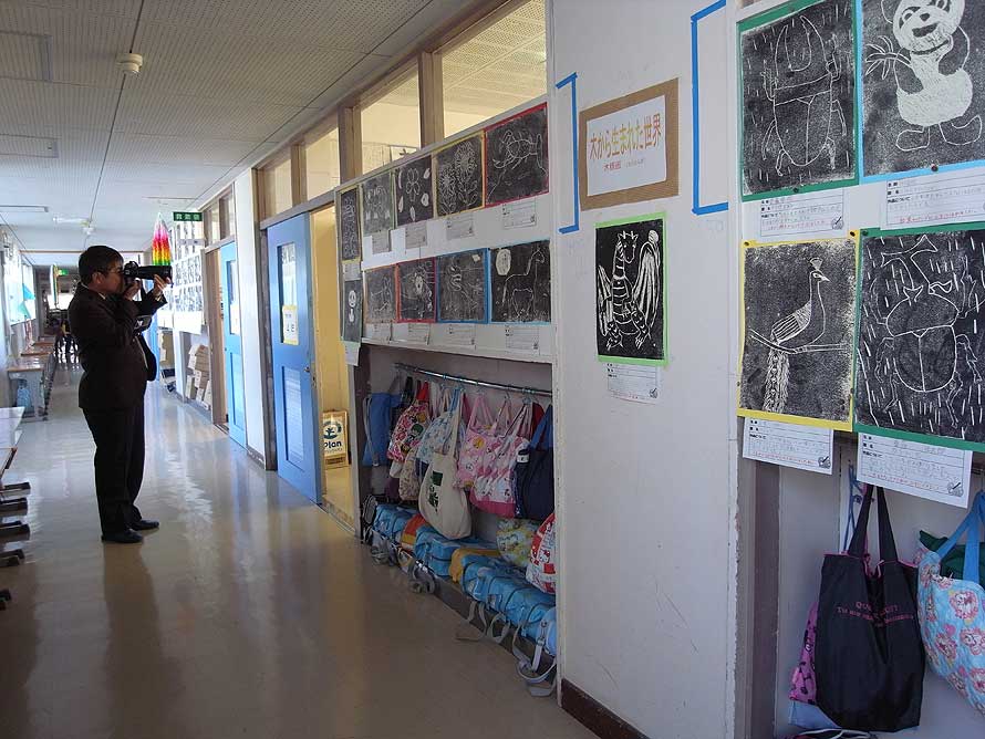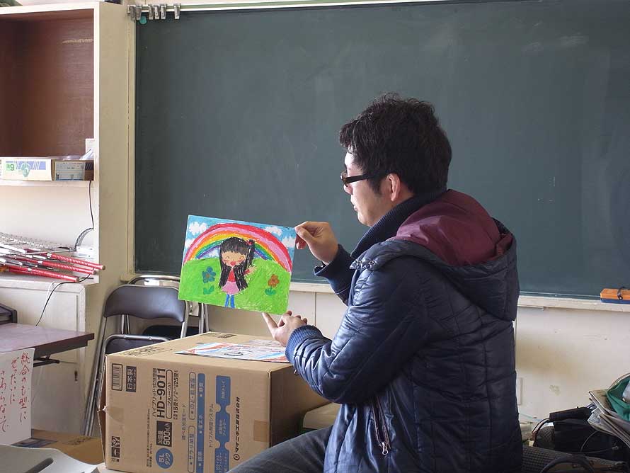 児童の絵の物撮り(宮城県石巻市・門脇小学校 青池憲司監督 2012年2月24日)