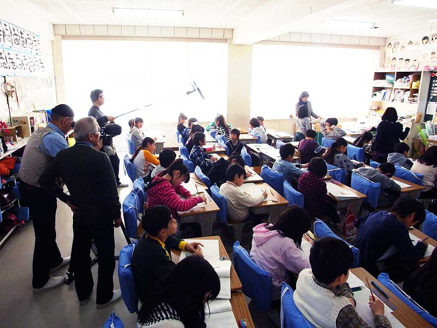この時間は、昨年の学校生活を作文に書いて振り返る。ロケ隊は静かにその様子を撮影していく。当然だが、先生も子どもたちもロケ隊を意識しない。まるで空気のようで、授業参観のような変な緊張感ももうなく、淡々として自然な様子だ。